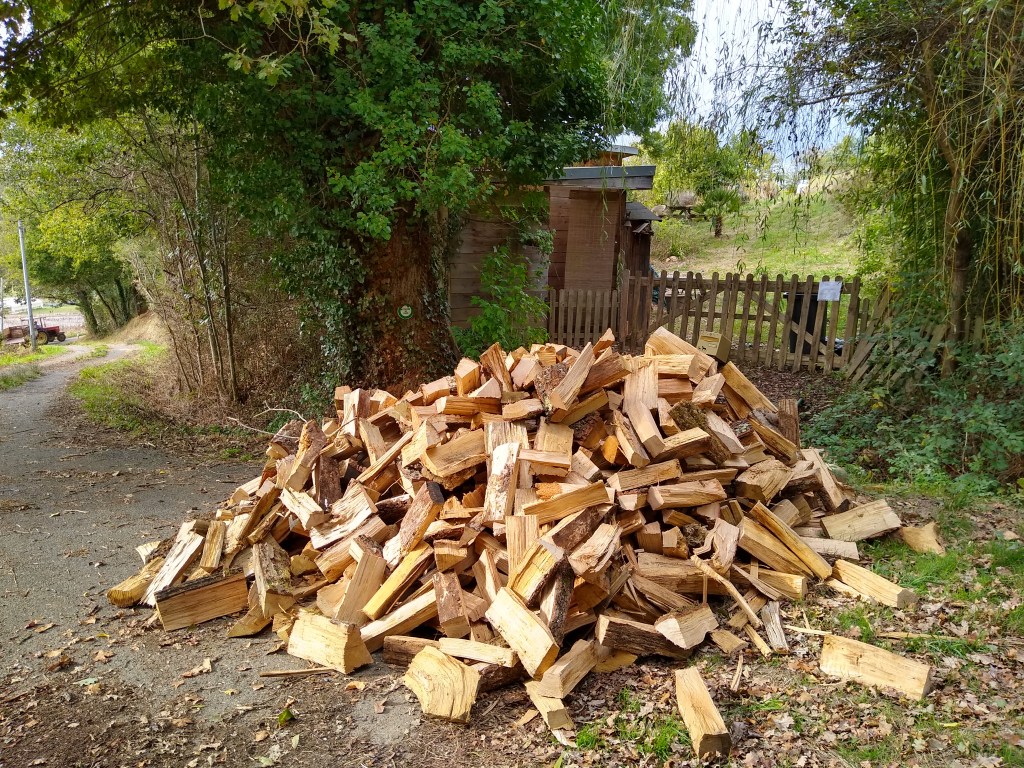 Our firewood! Three cubic metres to get us started. Now we’ve got to stack it all away.