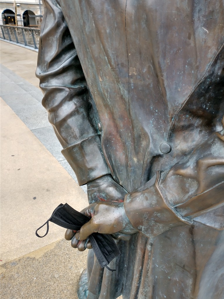 Somebody had slipped a mask into the hand of the statue. A sign of the times.