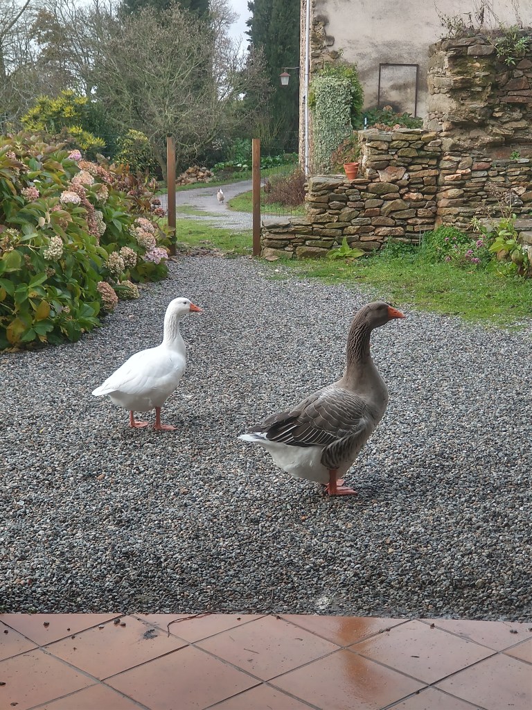 The geese in the rain. The gander has been distinctly aggressive – the sort of behaviour that has me imagining how good he would look stuffed and ready for the oven – but he has finally accepted us so we’ll live and let live.