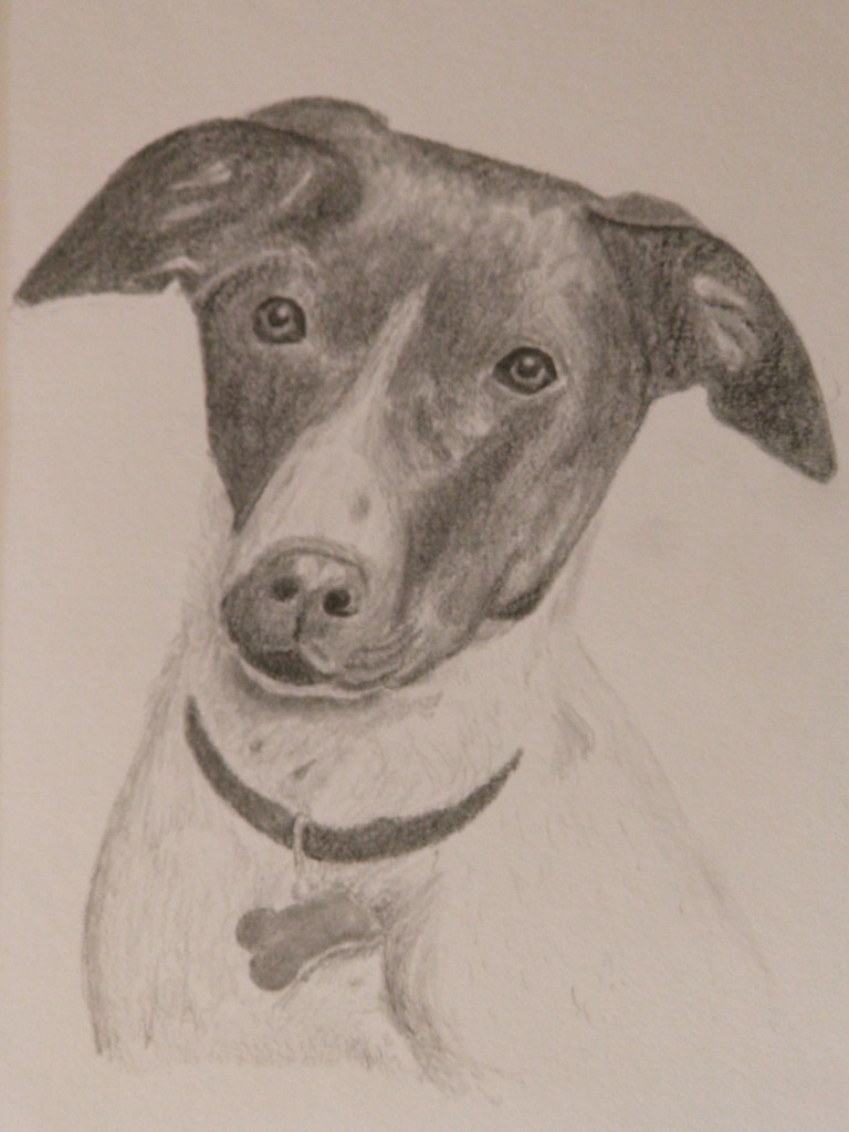 I’ll see you next week from a house where we are looking after something a bit different – a hawk called Artemis. Michael is already itching to get his pencils out and sketch it. I’ll leave you with one last picture, a copy of the sketch he did of the very sweet little dog that we have just left.