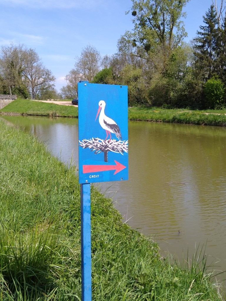 It often seems to us that the commercial human element is quietly fading away in so many small, rural towns in France but we are strangers, just passing through, and so never see the whole story. In contrast, the natural world around us was full of life, with a sense of abundance, a rich and fertile landscape that provided a safe haven to a whole host of creatures. Familiar feathered friends became part of our lives once more: swans regally patrolling their patch, glaring at us crossly for forcing them out of the way, woodpeckers and blue jays screeching noisily in the trees, old man heron searching for fish, coypu’s nibbling away on the bank with their enormous teeth and even a pair of nesting storks. White Charolais cattle grazed lazily in the long grass and brood mares nursed young foals. This particular area must be recognised for breeding horses because we saw so many of them, fine creatures with coats that gleamed in the sunshine.