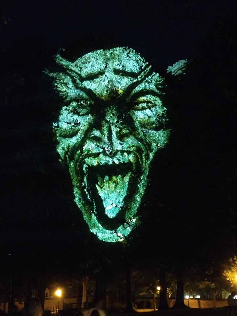 The thing that will stand out in my memory however was not the show on the cathedral itself, but an additional event staged in a garden to the side where images of the gargoyles were superimposed on the trees. As you can see below, they are superbly creepy.