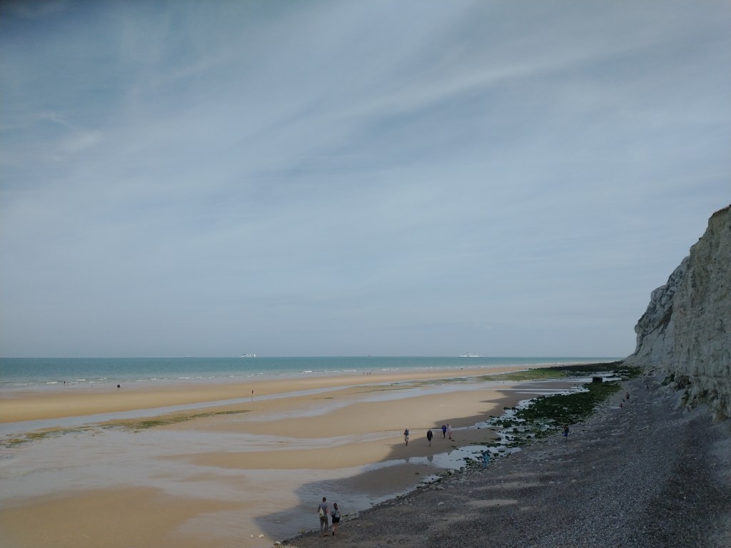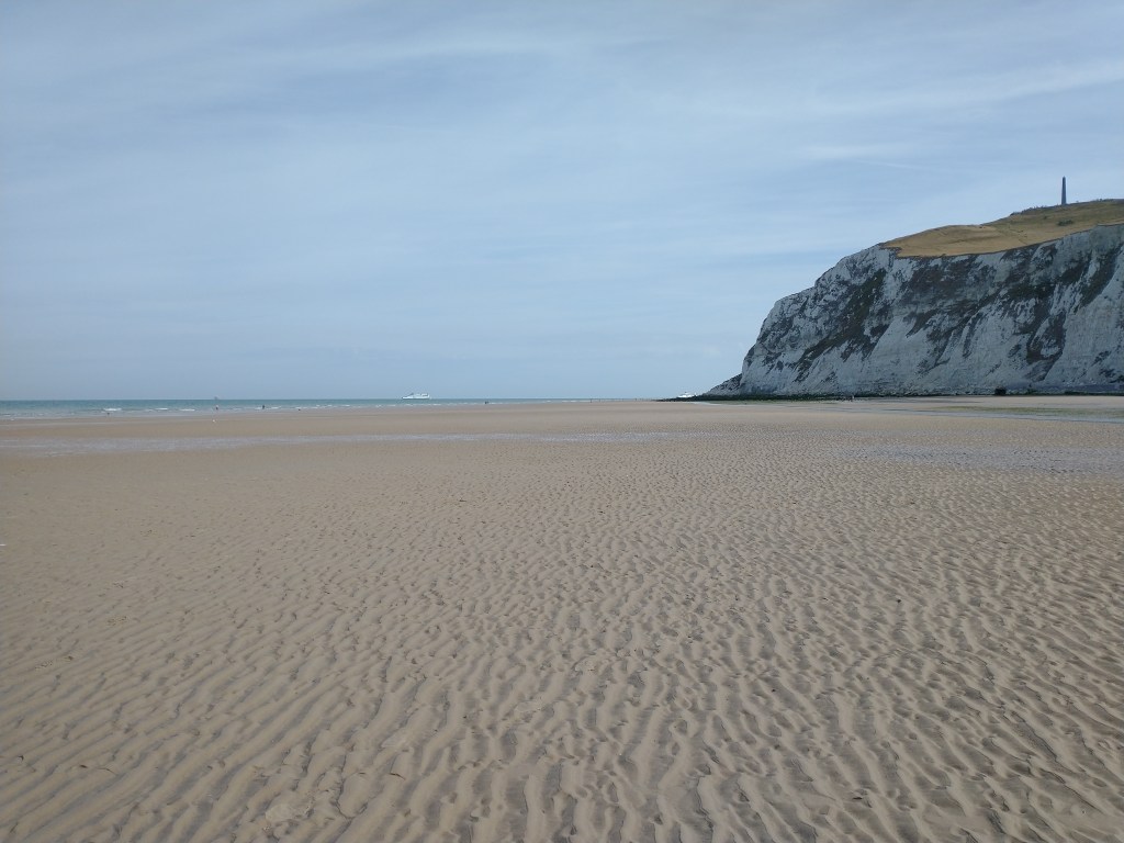 We’re not quite finished with France yet because we stopped for two nights camping near Calais and were pleasantly surprised at what we found. This is normally an area most people drive straight through, heading further south for the sunshine and the better known tourist attractions. However the coastline on the French side of the Channel is very attractive, with long sandy beaches and pleasing cliff-top walks and we were glad we spent the extra day here.