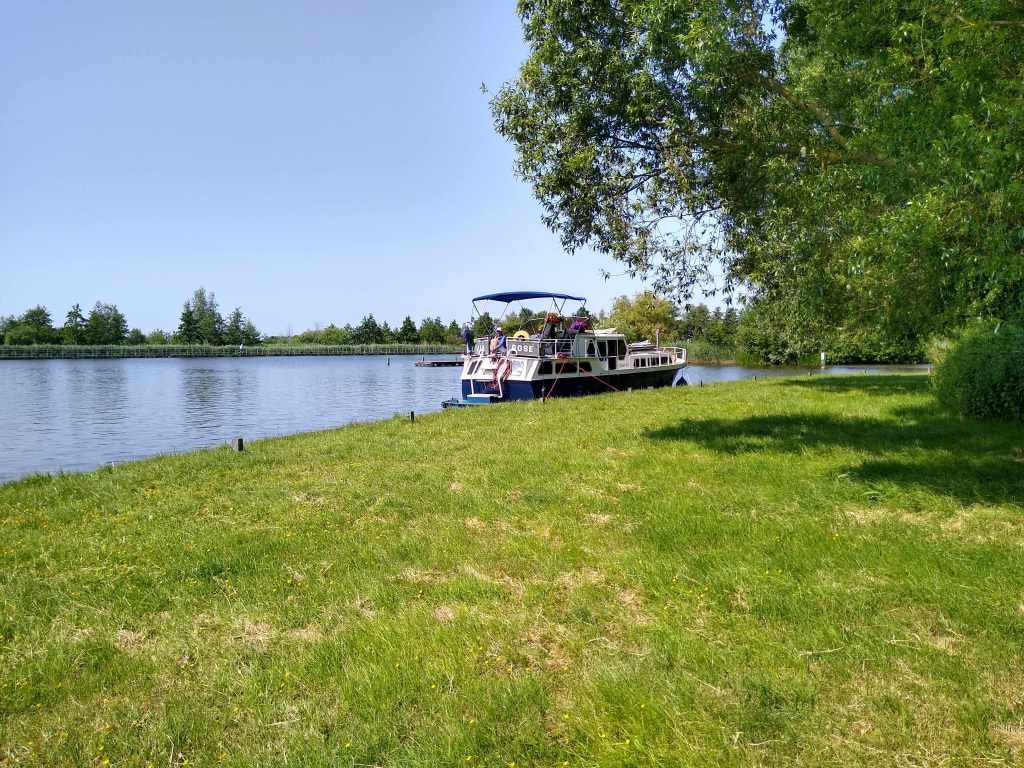 The bridge at the far side of the lake was indeed too low for us, so we had to take down the windscreen and the bimini (which is the awning for the boat) and Michael had to duck down low as he steered from the top deck but we got through with inches to spare and found an idyllic mooring waiting for us on the other side.