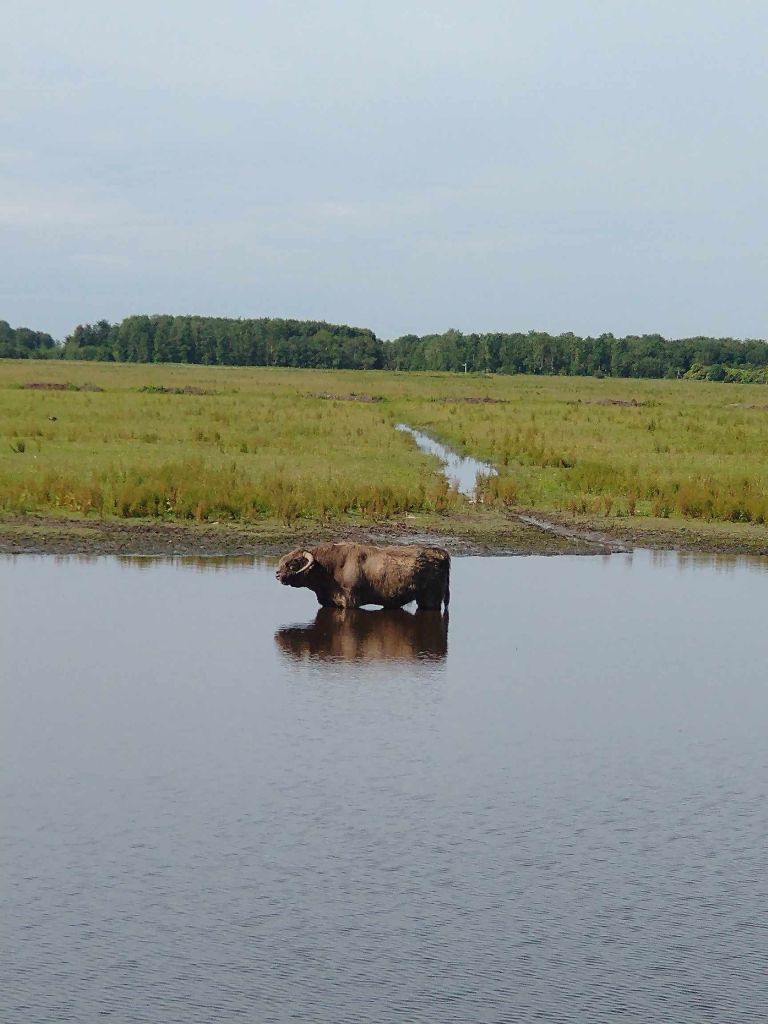 There are a lot of cows in Friesland but they are usually the black and white variety. We didn’t expect to see what looked like a small herd of Highland cows, but they seemed at home. Paddling in the shallow waters seemed a favourite past-time.