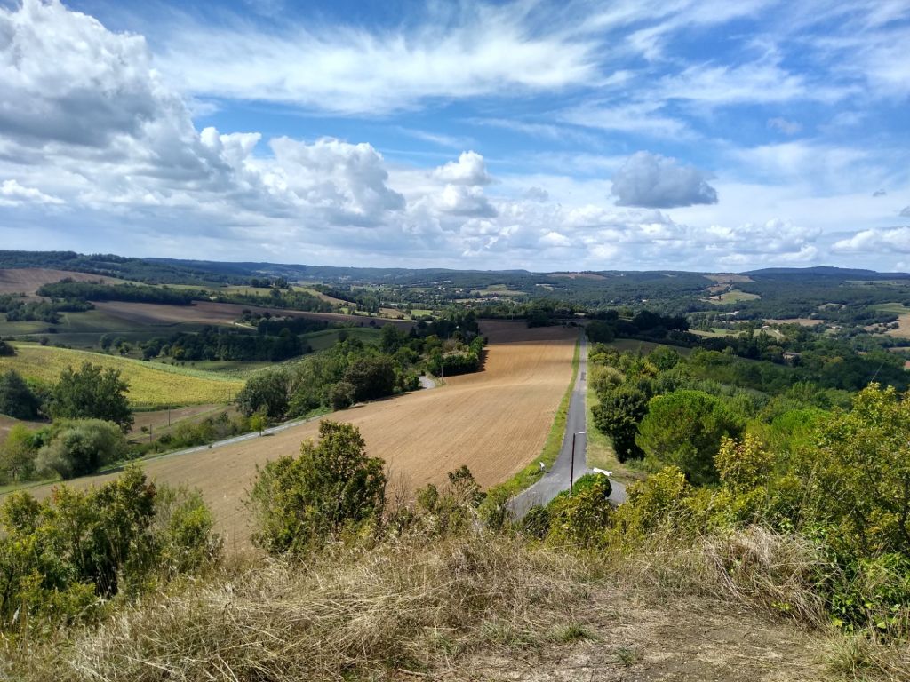 If you look very carefully into the distance you might see a pimple on a hilltop. That’s our nearest village, Castlenau de Montmiral, the closest place to buy any food. It might look far away but it’s roughly 5 km, all the way down to the valley floor and then all the way up again. There are times when I wonder what we’re getting ourselves into ….
