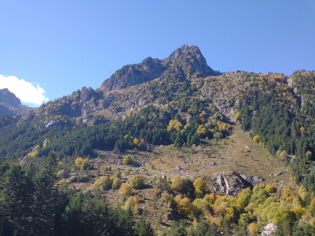 We were hitching a ride with friends on one of their regular trips into the Pyrenees and, given that all four of us were recovering from the dreaded virus, it would be a gentle walk. As we left the valley floor behind us and the car climbed ever higher up the narrow mountain road it seemed to me that the sky had never looked so blue, and that the sun had never shone so brightly. The trees were resplendent in their autumn colours, a shawl interwoven with green and gold, flung with casual elegance around the shoulders of the mountains. I stared out of the window, mesmerised in the way of someone who has never seen such a wonderful sight before, which sounds a little melodramatic, but you know how it is when you start to feel better after any illness that keeps you bed-bound for a while. There is an overwhelming gratitude and appreciation for all the little things you took for granted and the world feels as if it has been born anew.