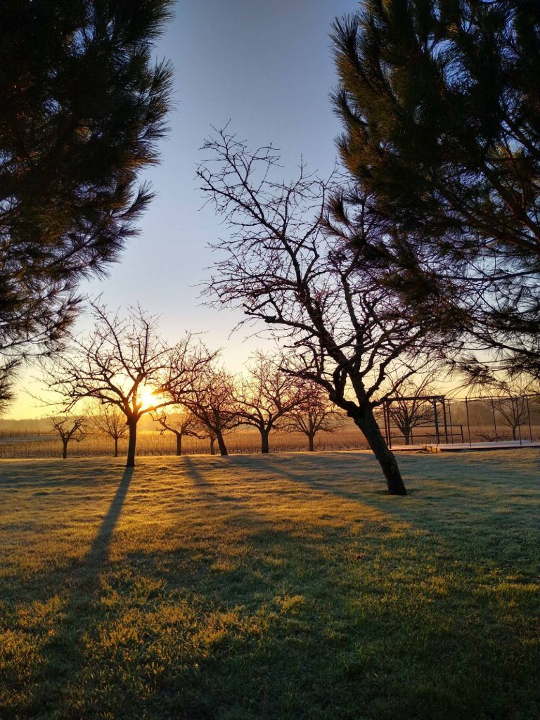 This house-sit is a short one, just a week, but it’s only a couple of hours drive from home, situated amongst the vineyards of the Bordeaux region and the renowned Agen plum orchards. We did consider cycling here, but organised a hire car instead. The weather is too unpredictable in January. We made the right decision as we arrived in the pouring rain and the next day the temperatures plummeted, falling as low as minus 7 at night for much of the week, struggling to get above freezing during the day. We haven’t had weather this cold for a long time and it was a shock to the system. A few degrees below freezing is perfectly normal in winter but the severity of those few extra degrees take it to a different level. Or perhaps we’ve just become southern softies. Whatever the reason, venturing outside was a tedious process of piling on the layers, topped off with hats, scarves and gloves, and waddling about like Michelin man. With a chill wind slicing the skin off my cheeks it was an endurance test, despite the fact that it looked beautiful.